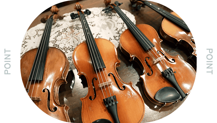 教室内でのバイオリンは無料でレンタルでき、楽器をお持ちでない方も体験レッスンから始められます!